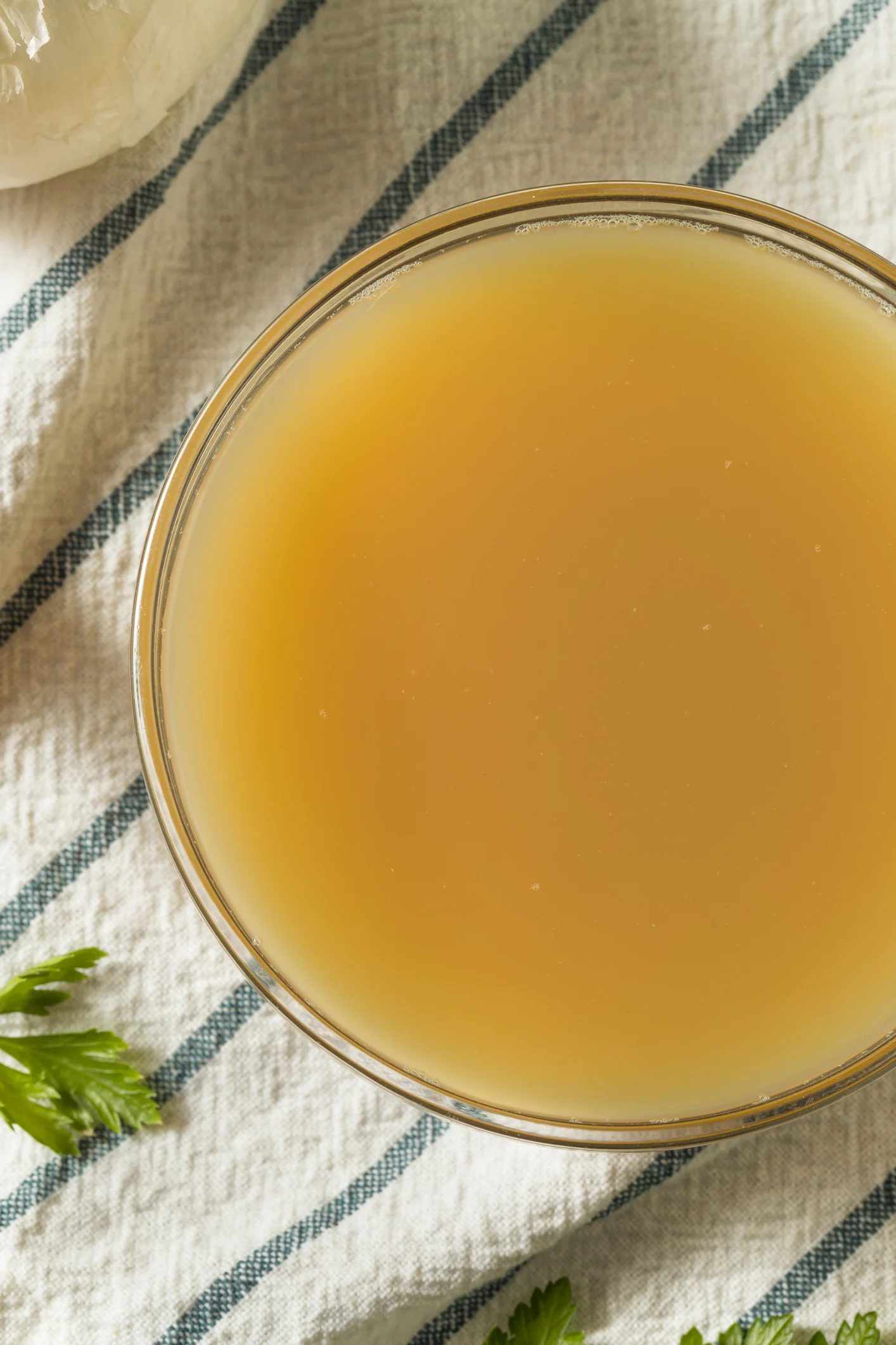 The broth below the fat layer should be thick and gelatinous — the longer you cook the bones for, the more gelatinous it will become. Transfer the broth to smaller airtight containers and place in the fridge or, for long-term storage, the freezer. The broth can be stored in the fridge for 4-5 days or frozen for up to 3 months.